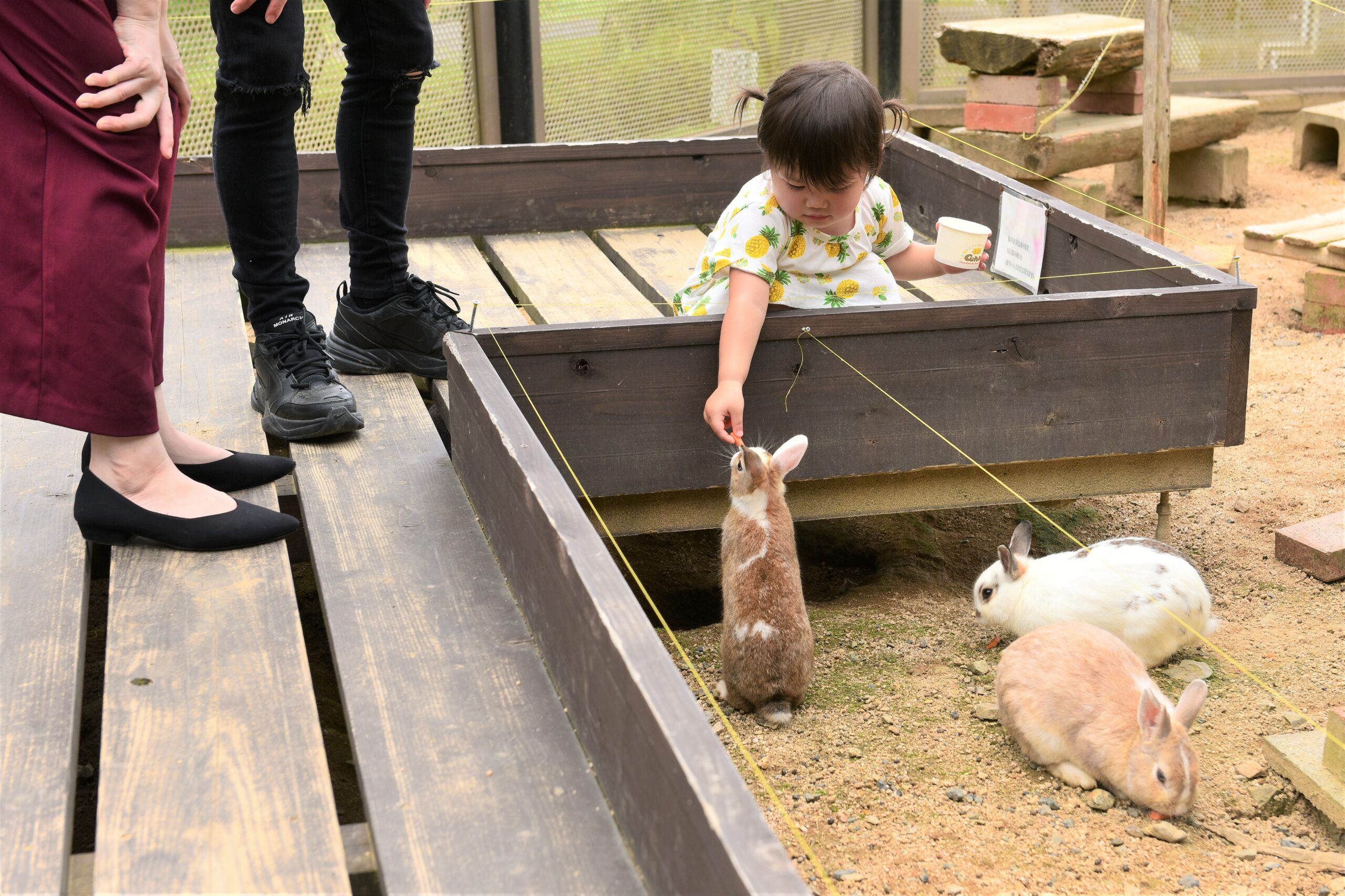 ヤギやウサギなどが間近に見られるほか、遊具やバーベキューができる設備も整っています。夏はヒマワリ、秋はコスモスが牧場の丘一面に広がります。