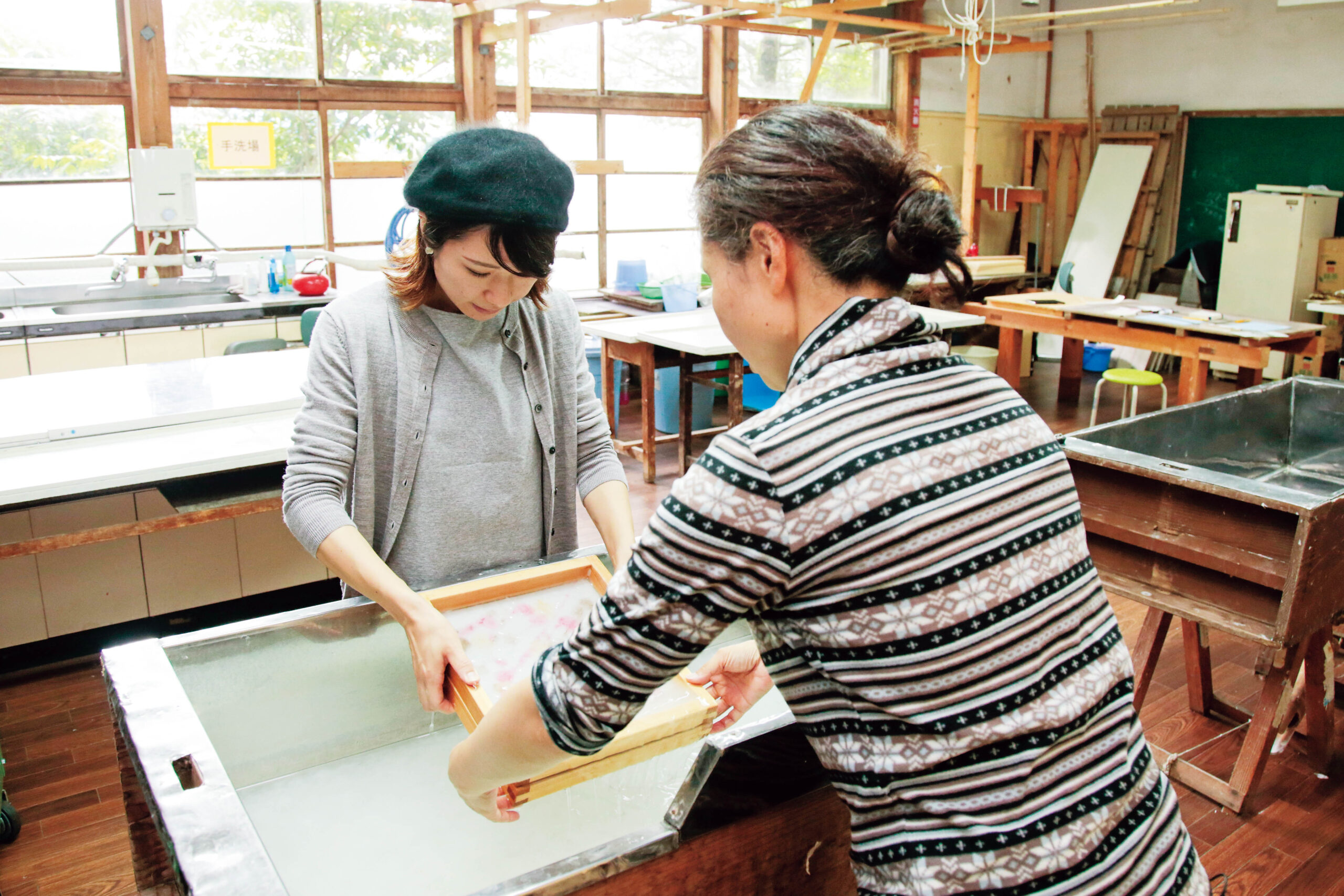手漉きの伝統を守る黒谷和紙は、京都府指定無形文化財。黒谷和紙会館では、はがき漉き体験のほか、展示場の見学や和紙工芸品の購入などができます。