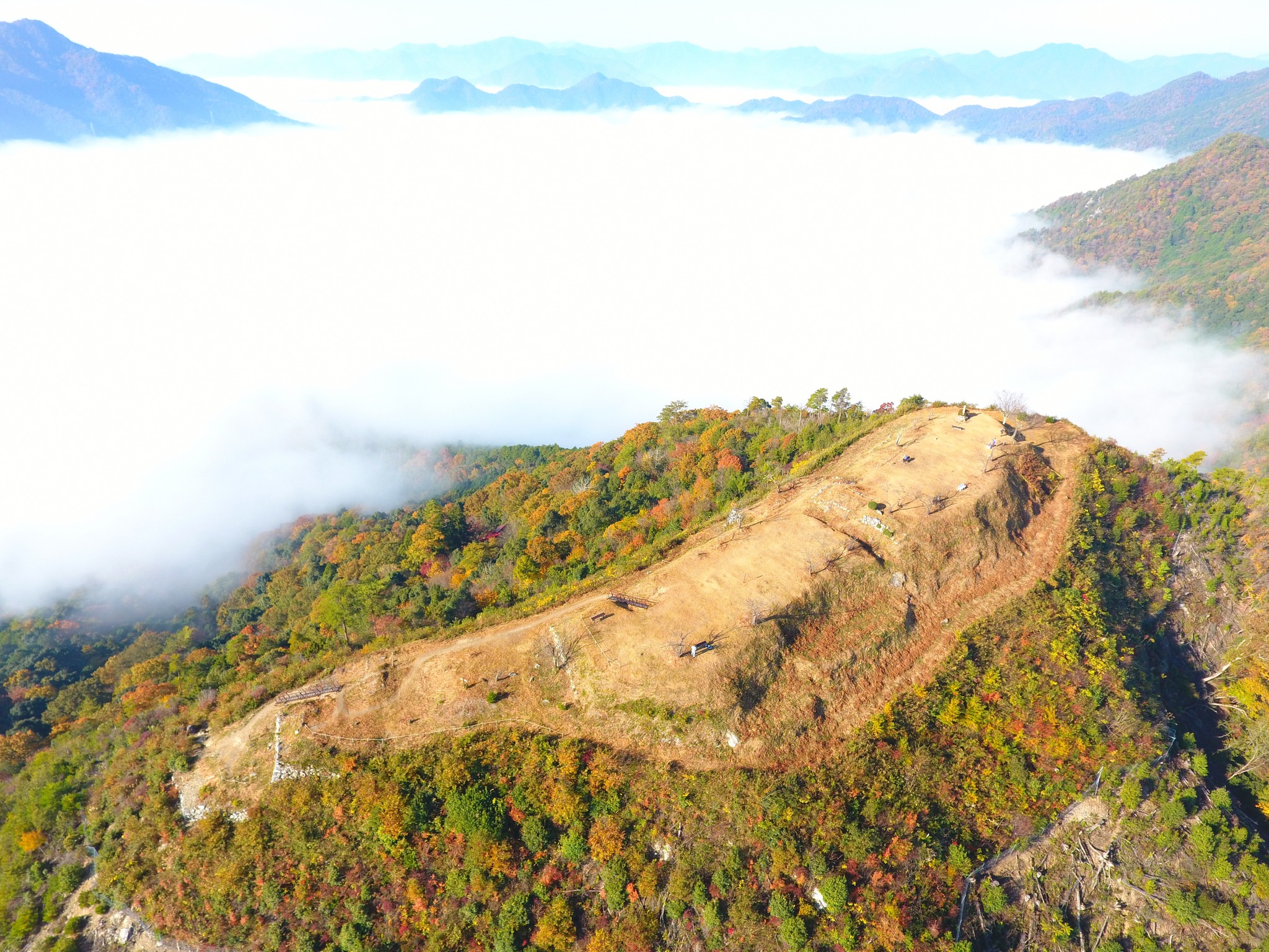 黒井城の歴史は遠く南北朝時代まで遡りますが、国指定史跡の立派な山城を築き上げたのは戦国時代の終焉の頃に城主となった荻野(赤井)悪右衛門直正です。標高356mの頂上の本城部分も含め周囲8kmに及ぶ猪口山全体が巨大な要塞で、山中のいたるところに曲輪や土塁、空堀など遺構がそのまま現存し、典型的な戦国時代の山城跡と高い評価を受けています。又、山頂からの展望がすばらしく、別名を『保月城』ともいいます。